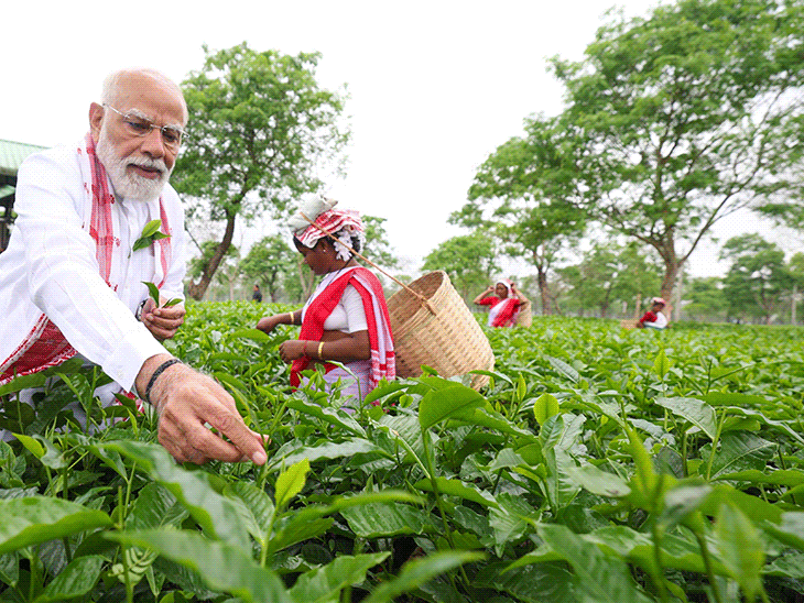 Home Bharat पीएम मोदी ने असम के चाय बगान में पत्ती तोड़ी: महिला...