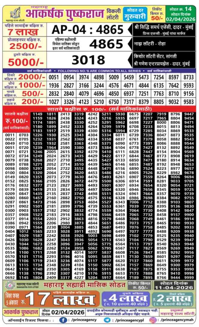 Check the latest lottery results for April 2, 2026, across Nagaland, Punjab, Maharashtra, Sikkim, Goa, Arunachal Pradesh, and more. Stay updated with the live numbers.