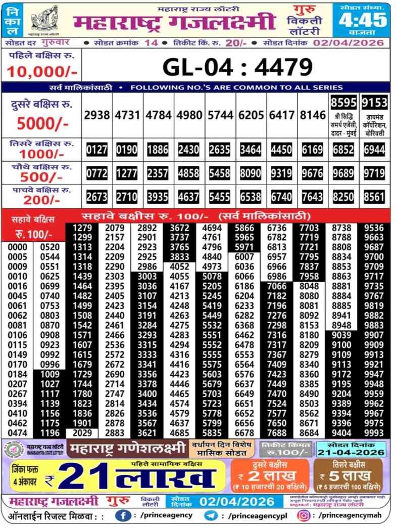 Maharashtra Gajlaxmi Guru Weekly Lottery Result