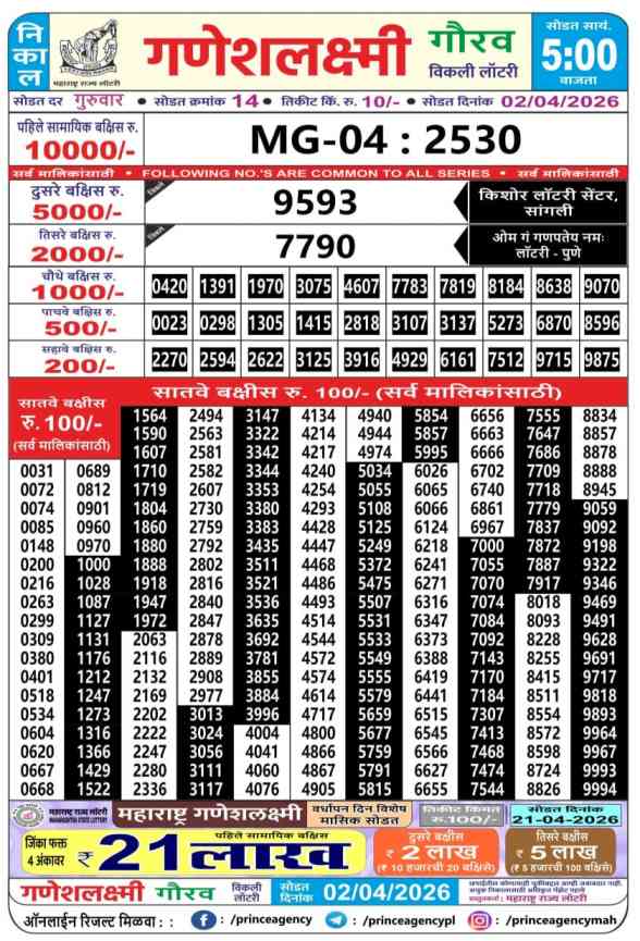 Maharashtra Ganeshlaxmi Gaurav Weekly Lottery Result