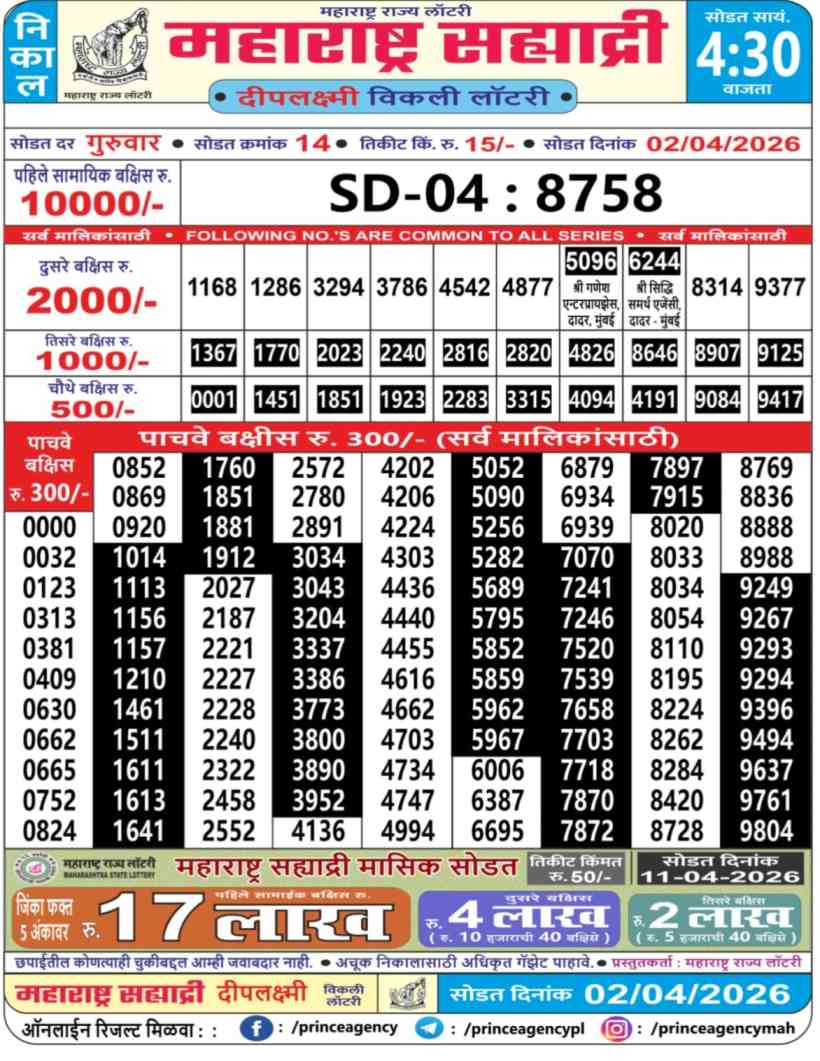 Maharashtra Sahyadri Deeplaxmi Weekly Lottery