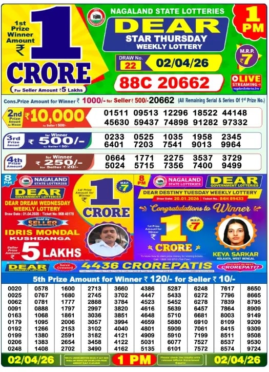 Official Nagaland Lottery Website: Results are typically posted at 1 PM, 6 PM, and 8 PM.