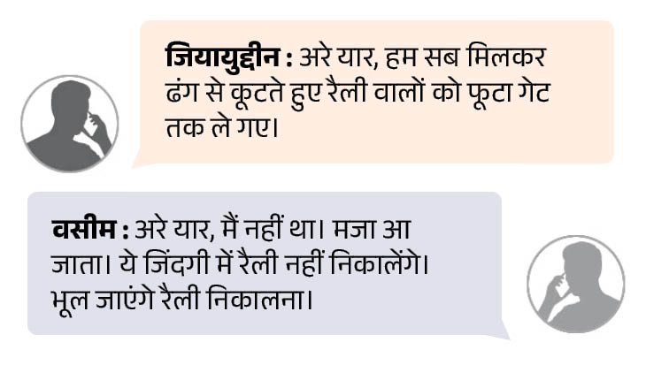 - जियायुद्दीन : फूटा कोट पर उतरते ही तोड़ दिया सबको। रैली आते ही अमीनुद्दीन ने बोल दिया था, मारो। हमने पत्थर, लाठियों, डंडे और सरियों से रैली वालों को तोड़ दिया।