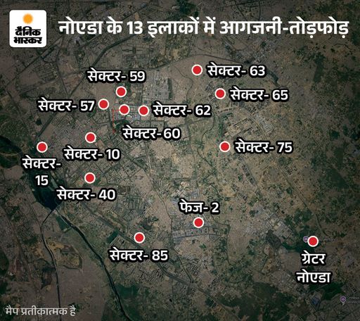नोएडा में कहां-कहां हिंसा हुई, मैप के जरिए समझिए