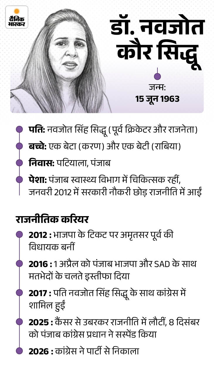 कांग्रेस ने सिद्धू की पत्नी को पार्टी से निकाला:नवजोत कौर ने लिखा- पप्पू ने अपने नाम पर मुहर लगाई; BJP ने मेरे टैलेंट को पहचाना