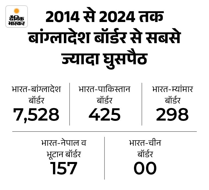 भारत-बांग्लादेश की 4,096 किमी लंबी सीमा में लगभग 175 किमी हिस्सा नदी और दलदली क्षेत्र में आता है। इन इलाकों में फेंसिंग लगाना मुश्किल होता है। घुसपैठ और तस्करी की घटनाएं होती रहती हैं। सीमा पर 10 सालों में 7 हजार से ज्यादा घुसपैठ हुई।