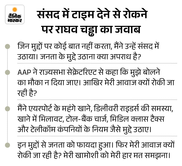 राघव चड्ढा का जवाब- खामोश कराया, हारा नहीं:AAP बोली- कोई मोदी से डर जाए तो क्या लड़ेगा; कल राज्यसभा उपनेता पद से हटाया था