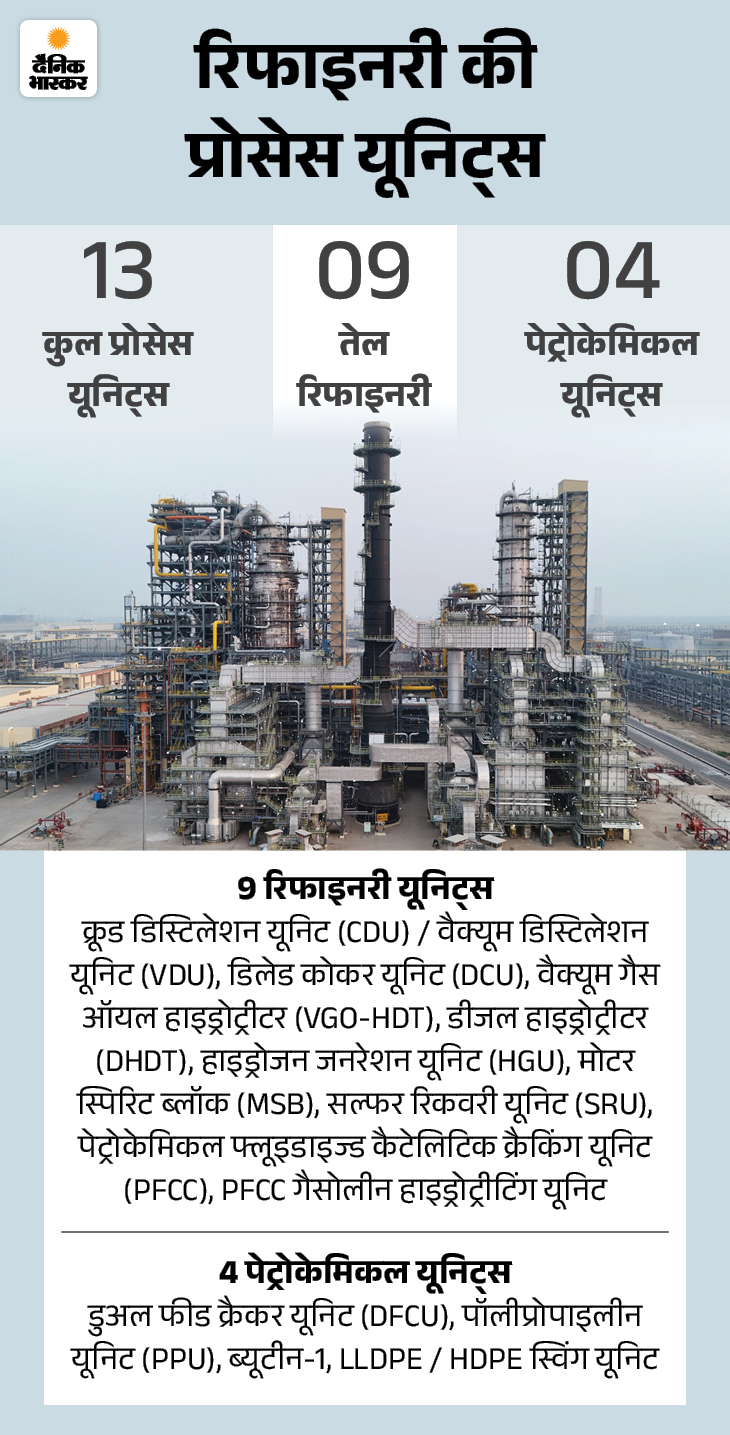 दैनिक भास्कर ने करीब 79,459 करोड़ रुपए की लागत से बनी रिफाइनरी की स्टेट्स रिपोर्ट को खंगाला। एनर्जी मामलों के ग्लोबल एक्सपर्ट डॉ. नरेंद्र तनेजा से जाना कि देश की सबसे हाईटेक रिफाइनरी से क्या बदलेगा?