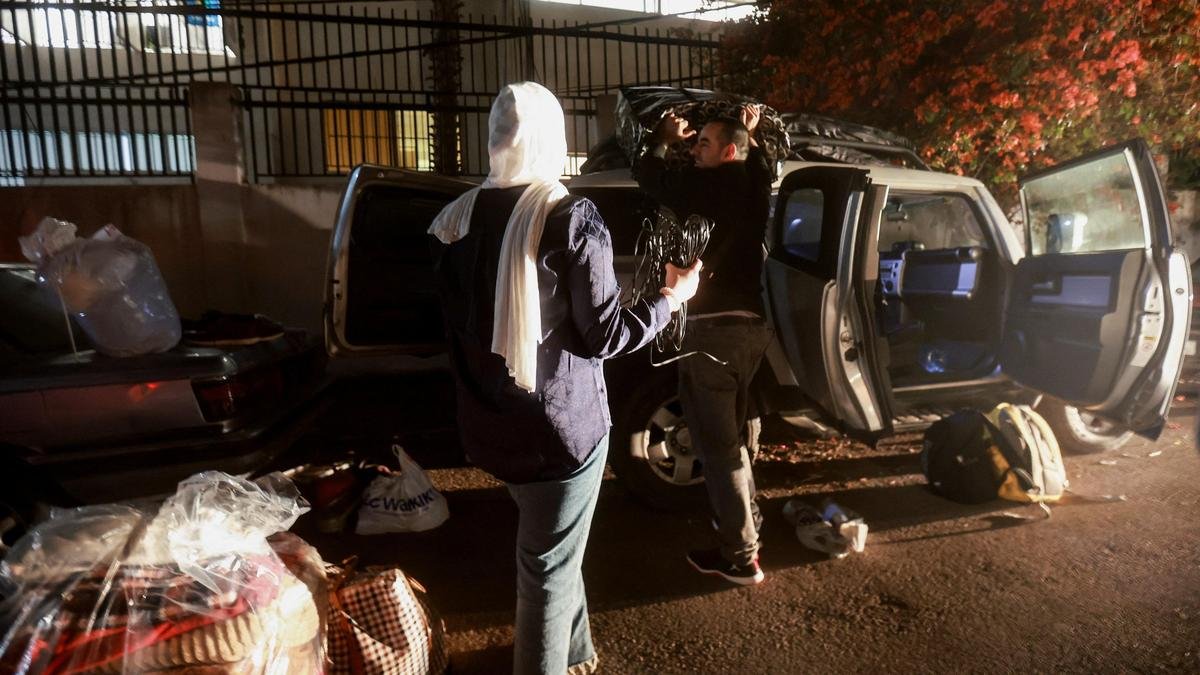 Displaced people load their belongings onto a vehicle as they prepare to return home after a 10-day ceasefire between Lebanon and Israel went into effect, in Sidon, Lebanon, April 17, 2026.