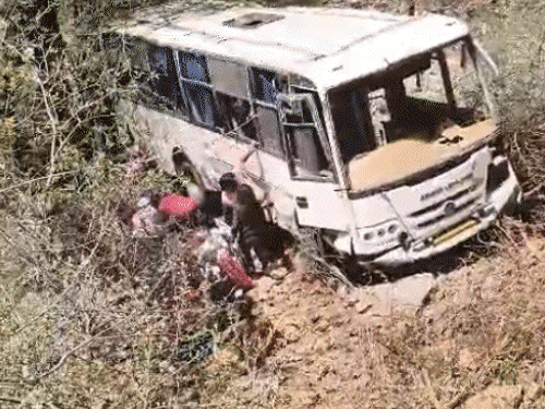 अजमेर में सवारियों से भरी बस 200 फीट नीचे खाई में गिर गई। हादसे में दो महिलाओं की मौत हो गई। 31 लोग घायल हो गए। पुष्कर जा रही बस में 33 लोग सवार थे। वे पीसांगन (अजमेर) में मायरा भरने जा रहे थे। इस दौरान पुष्कर घाटी में बस बेकाबू हो गई। हादसा पुष्कर से करीब 3 किलोमीटर पहले रविवार दोपहर करीब 12 बजे हुआ। मौके से गुजर रहे लोगों ने कपड़ों से रस्सी बनाकर घायलों को खाई से बाहर निकाला। कुछ घायलों को सीढ़ियों के जरिए ऊपर सड़क पर लेकर आए। वहीं कुछ घायलों को कंधों पर उठाकर लाए। सभी यात्रियों को पहले पुष्कर के सरकारी अस्पताल लेकर गए। वहां से उन्हें अजमेर के जेएलएन हॉस्पिटल रेफर कर दिया गया। एक्सीडेंट के बाद पुष्कर घाटी में लंबा जाम लग गया। पहले देखें, हादसे से जुड़ी 3 PHOTOS… 200 फीट नीचे पेड़ और झाड़ियों में फंसी बस सीओ ग्रामीण रामचंद्र चौधरी ने बताया- अजमेर से पुष्कर की ओर जाते समय सांझीसर से थोड़ा आगे यह हादसा हुआ है। बस अचानक मेन रोड से खाई में उतर गई। करीब 200 फीट नीचे आकर पेड़ और झाड़ियों में फंस गई। लोगों की मदद से 33 यात्रियों को हॉस्पिटल में भर्ती करवाया गया। इनमें से पूजा (28) पत्नी विजय सिंह गुर्जर और विमला देवी (50) पत्नी ओम प्रकाश गुर्जर की मौत हो गई। दोनों अजमेर की रहने वाली थीं। वहीं एक घायल को हॉस्पिटल से छुट्टी दे दी गई। ड्राइवर की तलाश की जा रही है। पुष्कर थाना प्रभारी विक्रम सिंह राठौड़ ने बताया- प्रथम दृष्टया मामला ब्रेक फेल होने का लग रहा है। हालांकि वास्तविक कारण जांच के बाद ही स्पष्ट होगा। फिटनेस और इंश्योरेंस, दोनों खत्म ऑनलाइन RC (रजिस्ट्रेशन सर्टिफिकेट) देखने पर सामने आया कि मिनी बस (RJ19PA9932) का फिटनेस और इंश्योरेंस, दोनों खत्म हो गए थे। बस का इंश्योरेंस 6 अगस्त 2025 जबकि फिटनेस 31 मार्च 2026 को खत्म हो चुका था। बस के मालिक अमृतपाल सिंह हैं। परिवार बस को किराए पर लेकर सवामणी में कपड़े (मायरा) लेकर जा रहे थे। अन्य तस्वीरें देखिए… इनपुट सहयोग- अभिषेक शर्मा, पुष्कर पल-पल के अपडेट के लिए ब्लॉग पढ़िए…