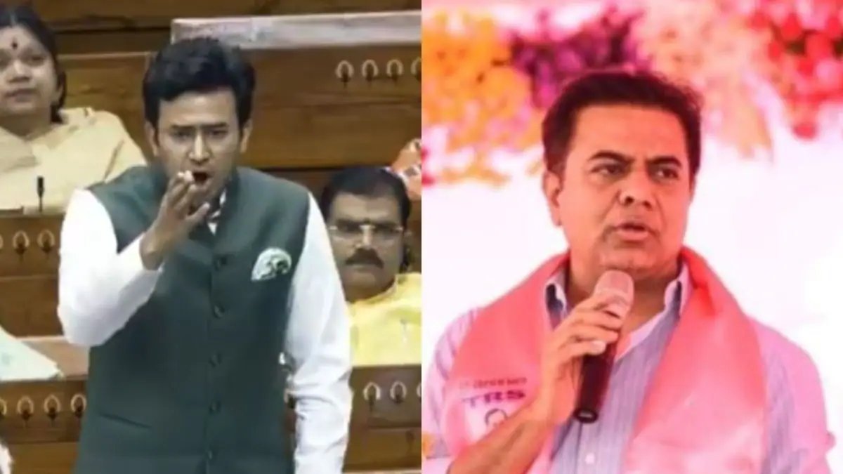 Left: BJP MP Tejashwi Surya; Right: BRS President KTR