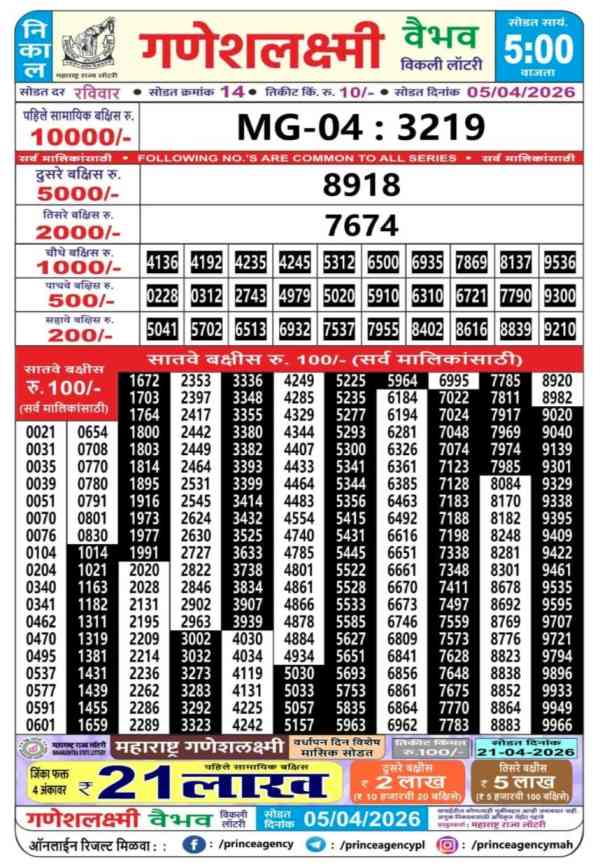 Maharashtra Ganesh Laxmi Vaibhav Weekly Lottery Result