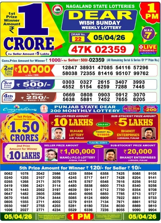 Lottery Results Today Live, April 5, 2026: State lotteries have become an exciting way for citizens across India to try their luck and win big. Each state conducts its own lottery draws, often featuring daily or weekly draws, with varying prize structures designed to provide an opportunity for everyone to win.