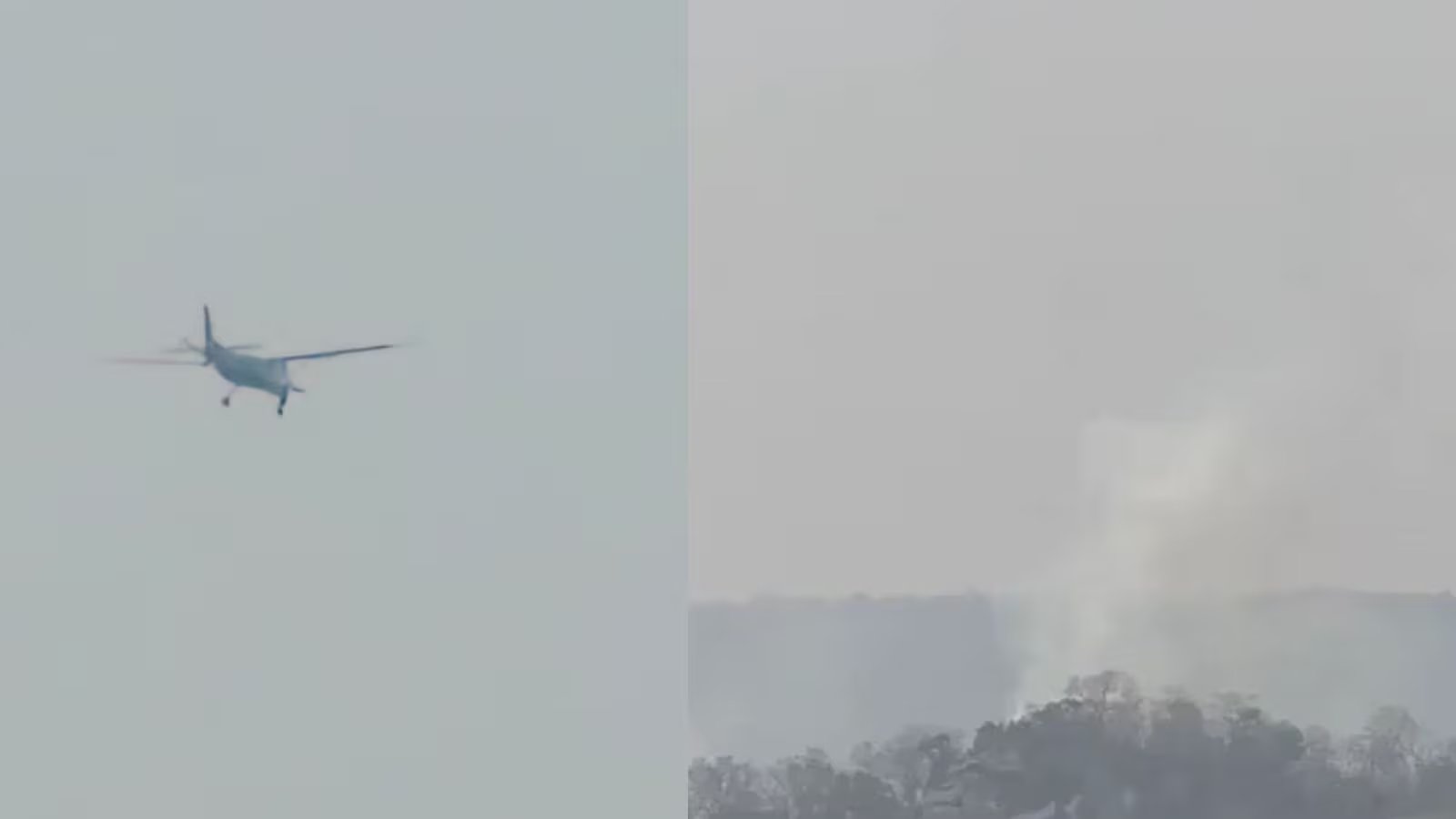 Private aircraft crashes in hilly Narayanpur area of Jashpur Chhattisgarh. Video shows smoke rising from the hills.