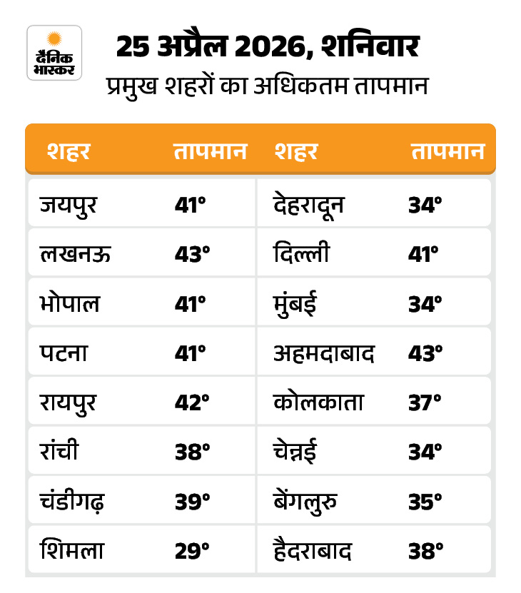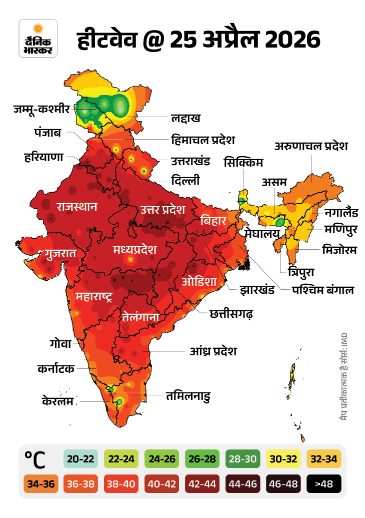 यूपी के आगरा, मथुरा, फिरोजाबाद और मैनपुरी में दोपहर 12 से 4 बजे मजदूरों के काम पर रोक है। कानपुर में 45 साल के सुनील कुमार की बाइक पर हीट स्ट्रोक से मौत हो गई। मौसम विभाग ने 17 जिलों में वार्म नाइट और 60 जिलों में लू का रेड अलर्ट जारी किया है।