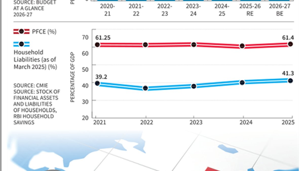 Private consumption accounts for roughly 61.4 percent of India’s GDP, yet household liabilities have risen sharply from about 36–37 percent of GDP in 2022 to over 41 percent by 2025, increasing sensitivity to inflationary shocks and suggesting that consumption is being sustained less by income growth and more through credit expansion.