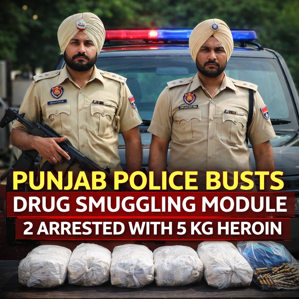 Punjab Police drug smuggling bust has once again highlighted the state’s ongoing crackdown on narcotics, as authorities successfully dismantled a drug trafficking module and arrested two individuals with 5 kilograms of heroin.